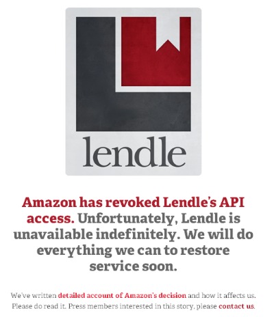 Have you had a chance to try Lendle yet? If not, you may never get the chance. Today Amazon revoked the application’s API access. Lendle, a program that allowed Kindle users to lend books from their libraries to friends for a couple week period, was only in operation for around 6 weeks.