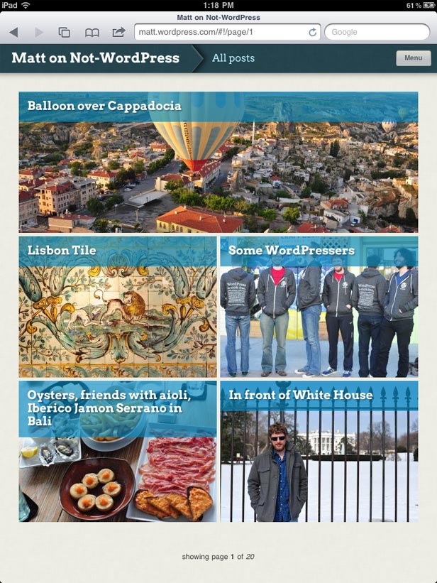 For publishers and webmasters the plugin means you have a new option for making your site more attractive to the growing number of iPad users (note that WordPress says they’ll be working on expansion to support other tablet devices). More and more people are going to be viewing your site on an iPad. You want to give them as enjoyable an experience as possible. The game has changed greatly from the days when all you had to worry about was what your site looked like on a desktop PC, or even just a PC and a mobile phone.